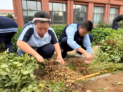 秋风送爽,校园一角的菜园也迎来了丰收季。同学们化身“小农夫”,兴高采烈地投入大自然的怀抱。他们小心翼翼地摘下紫得发亮的茄子,摘下红红绿绿的辣椒,再齐心协力,将一株株花生从泥土中“揪”出来,抖落泥土,露出饱满的果实。