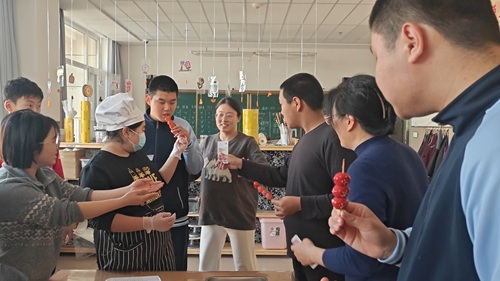劳动技能课上,老师带着同学们一起去中职三年级的糖葫芦摊位,体验购物实践啦!上课后,老师先给每位同学发了一张5元纸币,大家认真拿好、别弄丢,接着排好整齐的队伍,跟着老师有序前往摊位。到了摊位前,同学们依次上前,先跟摊主礼貌问好,再把5元钱递给摊主,清晰说出“买一串糖葫芦”。糖葫芦每串4元,摊主收到钱后会找给大家1元零钱,大家要双手接好找零,小心收进兜里,再接过糖葫芦,跟摊主说声谢谢。买完后,大家排着队跟老师回到教室,老师带着大家回顾:5元买4元的糖葫芦,找1元,理清付钱、找零的小逻辑。这次实践既学会了礼貌购物,又掌握了简单的钱币计算,在动手体验中提升劳动技能,收获满满~